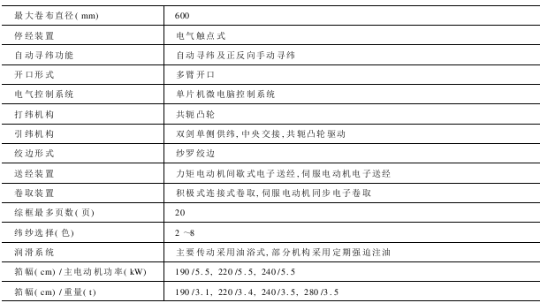 控制与检测 采用微电脑控制系统、具有自动寻纬、故障检测、自动选纬、断经自动停车、断纬自动停车、液晶显示等功能。