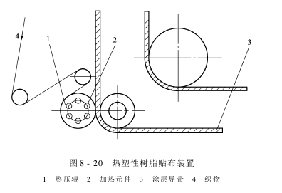 (2)贴布装置:为使织物平整地粘贴在导带上,通常采用水溶性浆贴布和热塑性树脂贴布两种形式。而它们要采用两套完全独立的贴布装置。