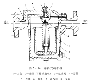 由于浮筒内经常保持有一定的冷凝水,且水位高于套管下端,形成水封,蒸汽无法外泄。调节阀用来调节排水时的水流速度,使浮筒缓慢上升,避免产生强烈冲击。