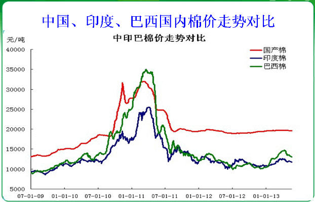中国、印度、巴西国内棉价走势对比