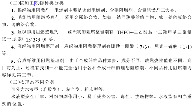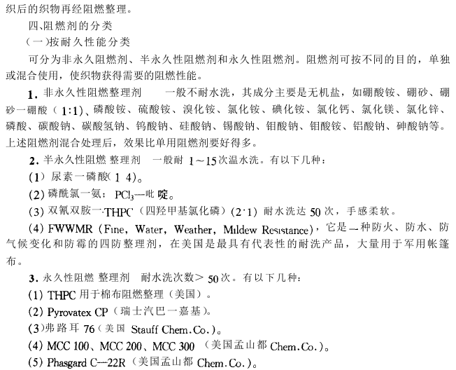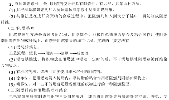 从燃烧过程、燃烧条件及燃烧体系的分析可知,要达到阻燃目的,就必须切断由可燃物、热和氧气三要素构成的燃烧循环。阻燃剂的作用就是将纤维燃烧的三个要素,以某种方式抑制或终止该循环过程,以达到阻燃之目的。