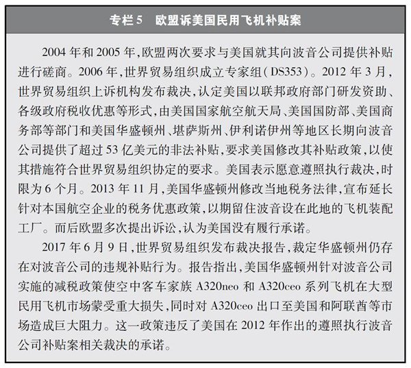 在航空领域,美国波音公司2000年以来获得联邦和州(地方)政府的定向补贴金额145亿美元;2011年以来获得来自各级政府的贷款、债券融资、风险投资、贷款担保、救助等737亿美元(专栏5)。