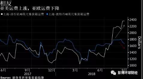 据德鲁里世界集装箱指数,截至9月13日当周,40英尺集装箱从上海港到洛杉矶港运费已达到2362美元,是2014年12月以来高水平。