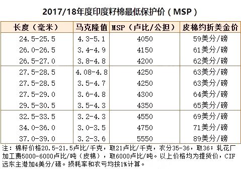 2月1日印度公布2019年大选之前后一个预算案,在该预算案中,印度财政部长ArunJaitley宣布将提高夏季作物低收购价(MSP),新MSP将按照作物生产成本1.5倍来计算。对于籽棉来说,这意味着2018/19年度MSP将比本年度增加超过22%。