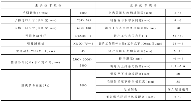 (二)MY—96型锯齿轧花机的主要技术特征