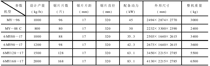 MY系列和6MY系列锯齿轧花机的技术参数见表8-2。