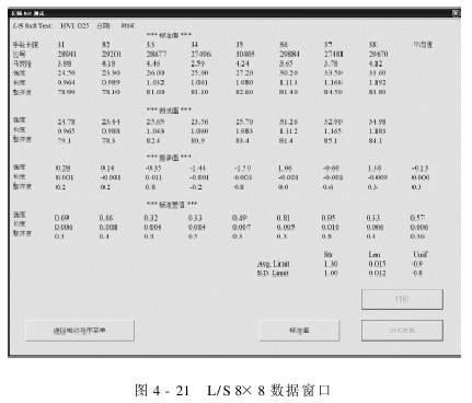 验收程序测试仅仅在需要时进行,其中包括长度/强度(L/S)8×8测试、马克隆(MIC)8×6测试、颜色8×12测试、杂质8×12测试四种测试模式。验收程序测试是在模块测试菜单下的“测试模式”选项中执行的。下面以长度/强度(L/S)8×8测试为例说明。