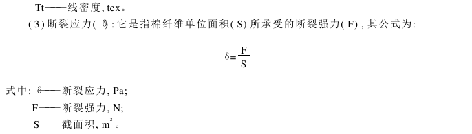 (1)断裂比强度(P S ):它是指未应变的纤维试样,单位线密度(Tt)所承受的断裂强力(F),其公式为:
