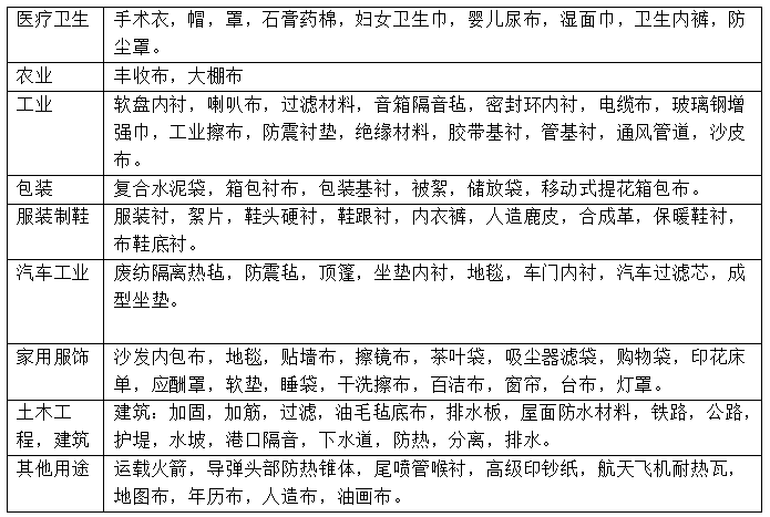 工业方面:工业水泥包装袋,还有一些工业材料(过滤、绝缘材料)。