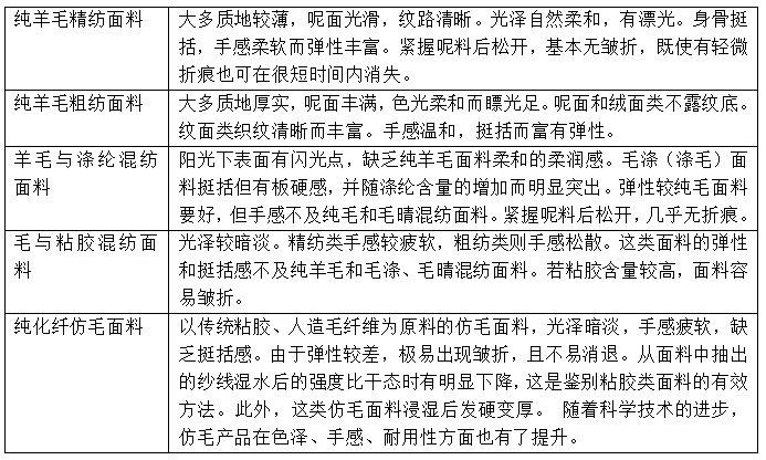 羊毛织物整体垂感比较好,光泽柔和一般不会打褶,纯羊毛会有更好的透气性。