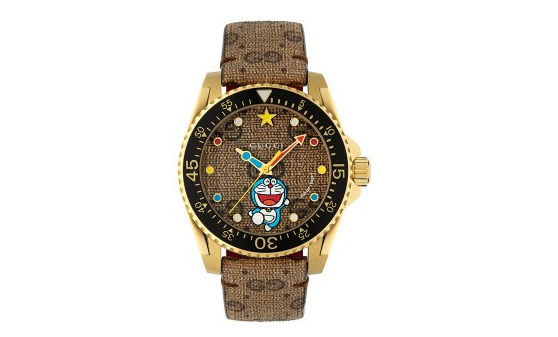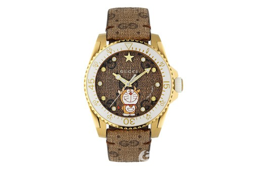 古驰这款2021新年Doraemon × Gucci联名系列,“大儿童”亚力山卓·米开理(古驰创作总监)将深入人心的动漫角色哆啦A梦融入单品创作中。联名系列与Gucci Dive潜水表相结合,表带采用GG Supreme帆布材质。