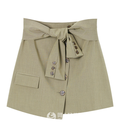 绿色短裙非常吸睛,裙子上的纽扣让它看起来不会很单调。可以选择搭配白色的上衣搭配在一起就够清新自然了。