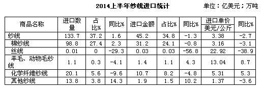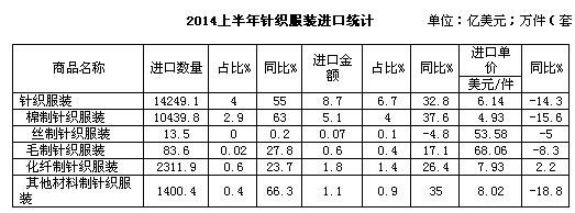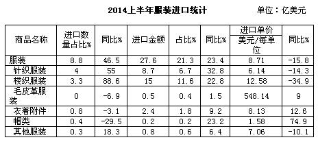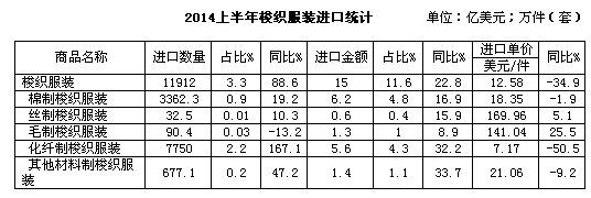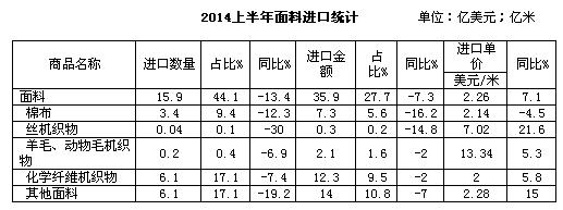 一、2014上半年纺织品服装进口概况