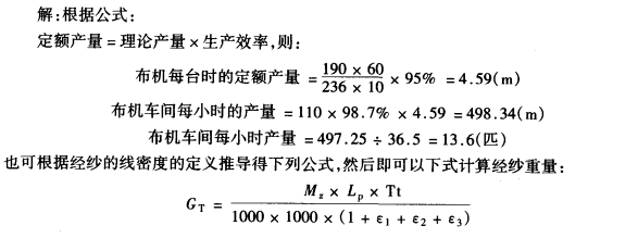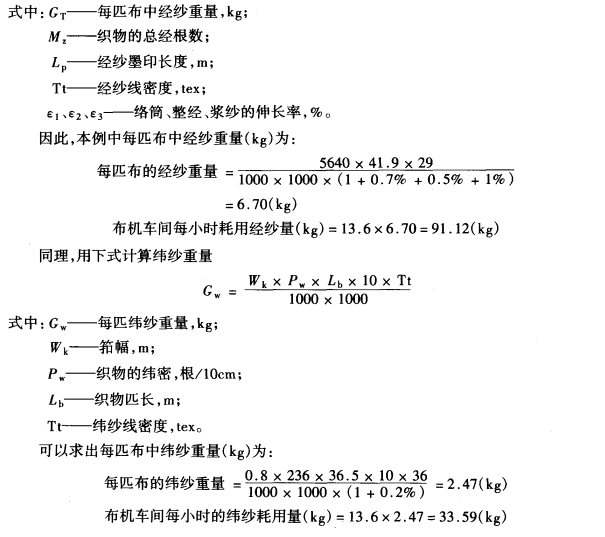 对准备车间和纺纱车间的生产供应拟采取以重量计量时,必须将布机车间的生产量折算成经纬纱的总重量。