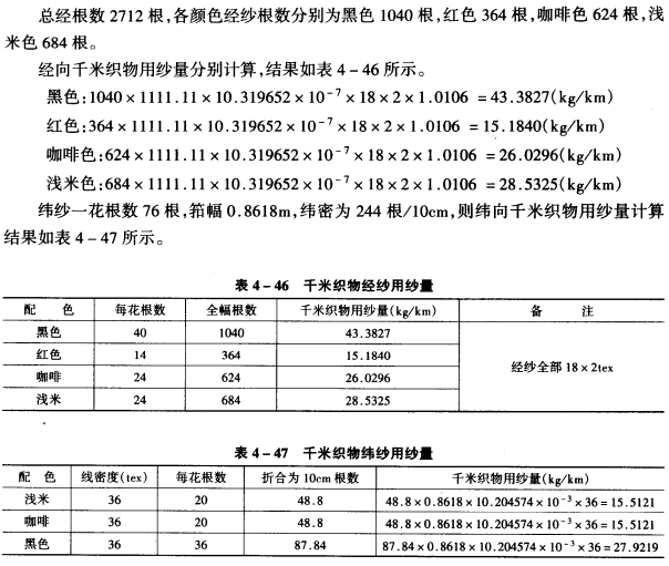 出此知,布身地经经密为287根/10cm,布身经起花区域经密为574根/10cm。