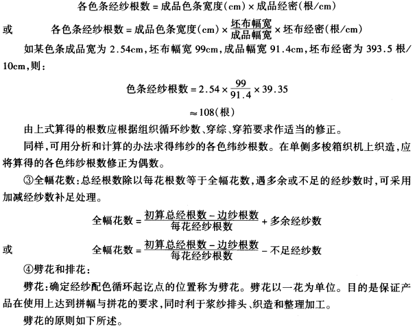 对来样可由分析来样或先量出色条经纱幅宽,再乘以成品经密求得。