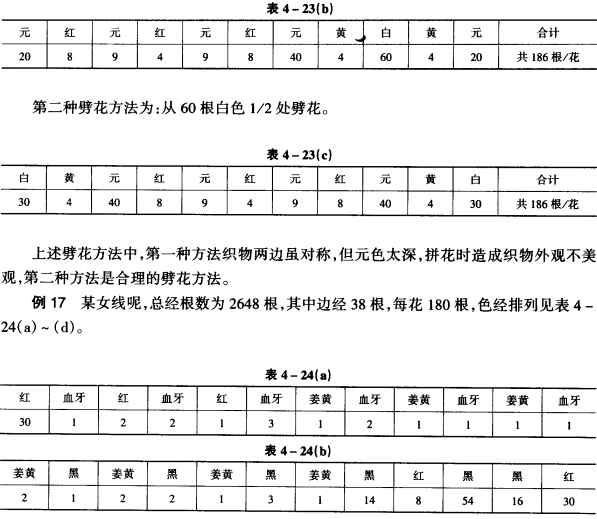 ②每花经纱根数:即每花的配色循环。如果是本厂设计的样品可从设计人员处查得。