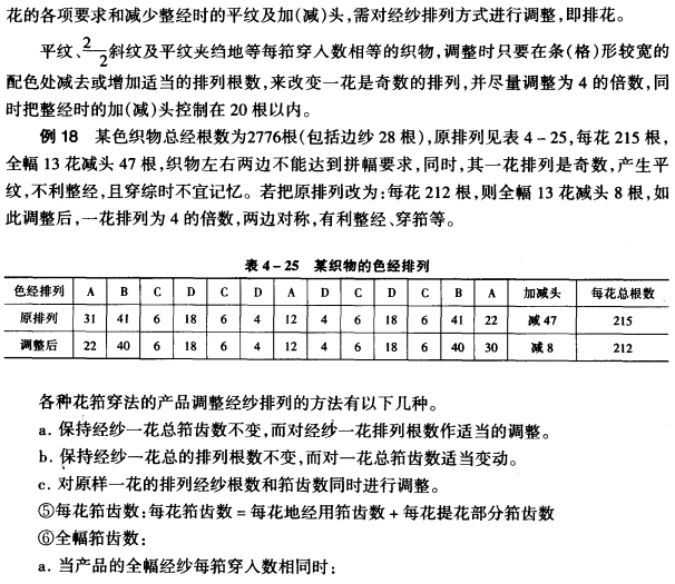 排花:工艺设计时,为把总经根数和上机筘幅控制在规定的规格范围内,使产品达到劈