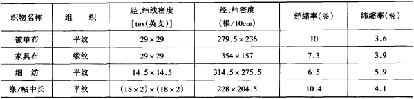 1.纤维原料 不同原料的纱线在外力作用下的变形能力不同,对织缩率的影响也不同。一般来说,易于屈曲的纱线,其织缩率较大;易于产生塑性变形的纱线,其织缩率较小。