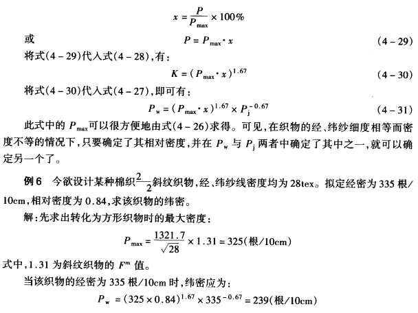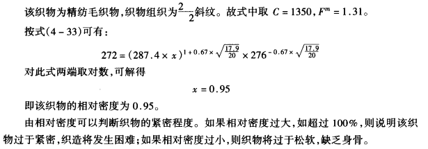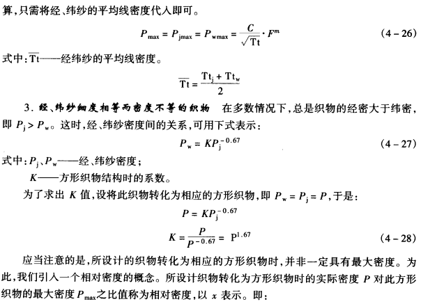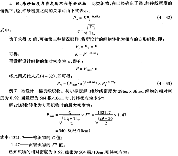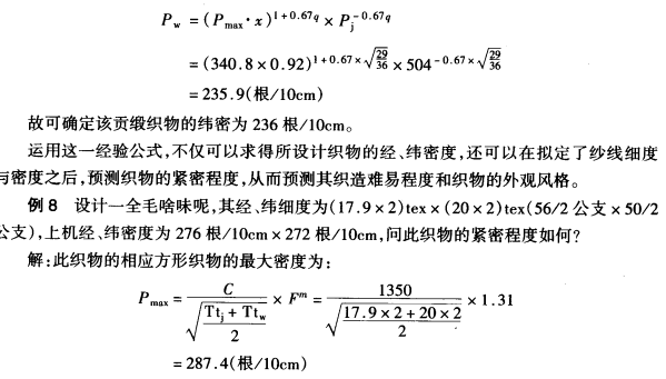 应用勃莱依里经验公式可以求得在正常织造条件下的织物大经、纬密度。这种方法可以分为四种情况来计算。