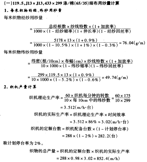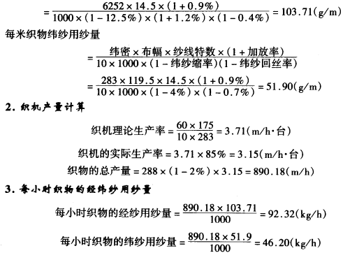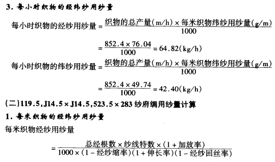 织物用纱量计算