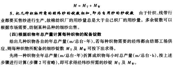给出细纱总锭数,几种织物的品种及这些品种织机机台数、售纱用途,则各种纱的配备锭数M1%、M2%、M3%……Mn%可按下法求出。