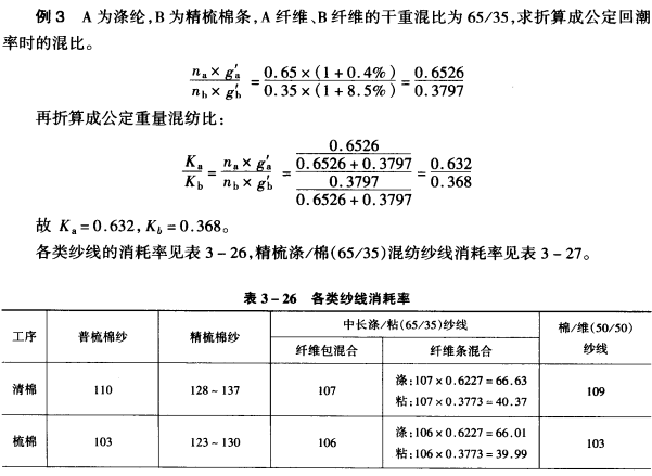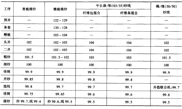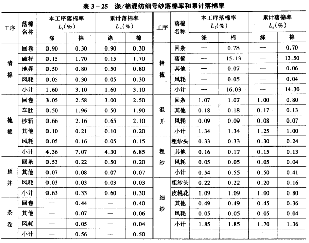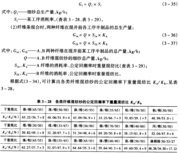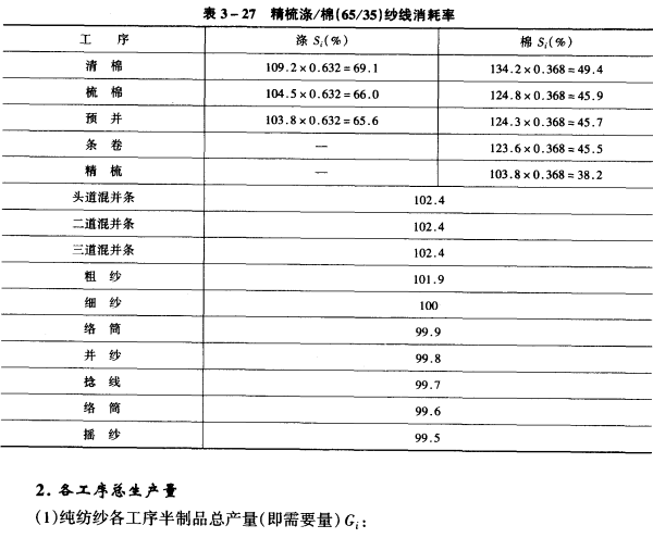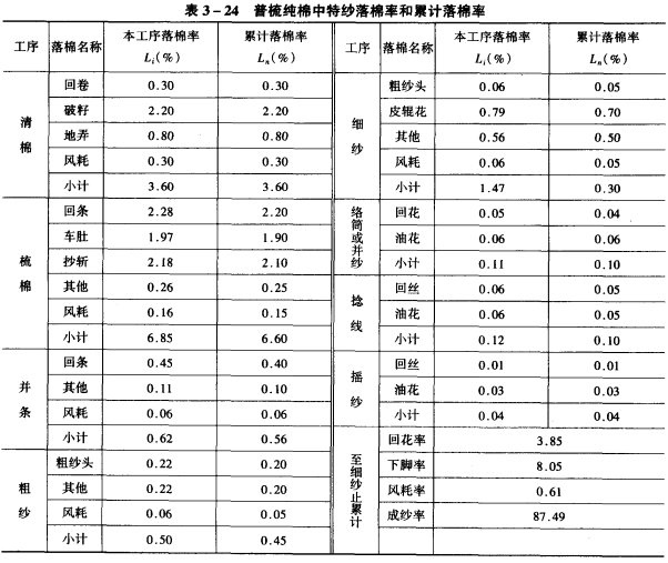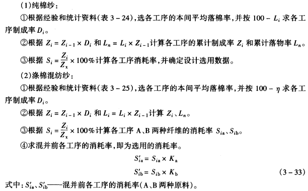 1.消耗率 生产过程中,必然要产生回花、落棉、回丝、风耗等落物,形成一定量的消耗,使后一工序的产量小于前一工序的产量,通常用消耗率表示各工序消耗量的多少。