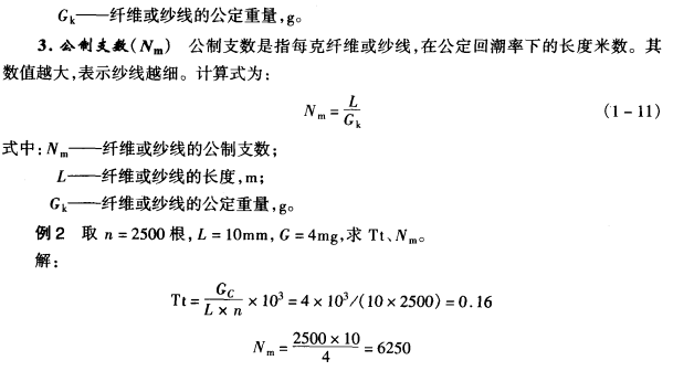 线密度Tt为法定计量单位,所有的纤维及纱线均应采用线密度来表达其粗细,但由于习惯上的原因,表示纤维粗细程度的指标还有旦数和公制支数。