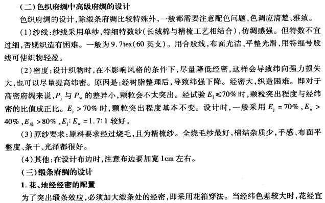 (2)织造与风格相结合,经纬大多采用特细特股线或经股细纬纱粗。