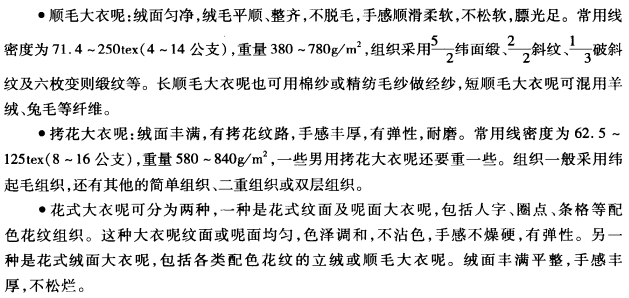 (6)风格多样,手感柔软、蓬松、十满厚实,保暖性良好。织物表面有毛绒覆盖