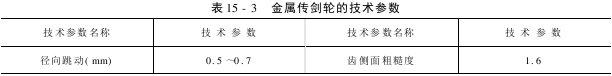 关于金属传剑轮的具体技术参数,各主机厂有不同的要求,一般的标准水平见表15-3所示。