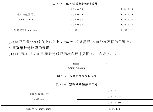 (1)C形、J形单列偏眼钢片综综眼的形状和尺寸见图7-6和表7-5。