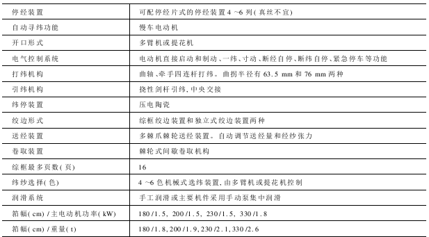 适织品种 适用于织选粘胶丝、化纤、棉、混纺纱为原料的中厚型平纹、斜纹、缎纹以及提花织物,该机可配多臂机,可容纳16页综框。