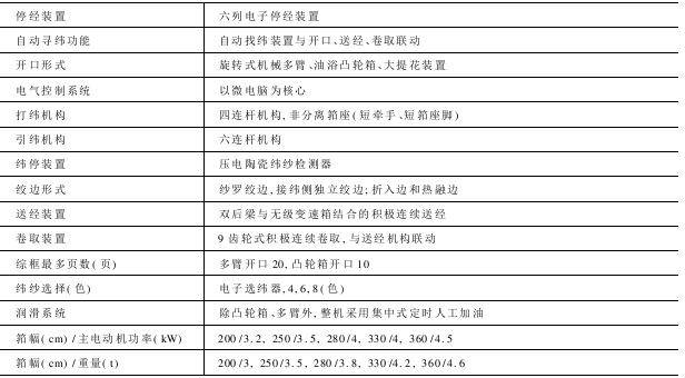 适纺织物品种 本机适用于平纹、斜纹和提花组织织物的织造,可织制轻薄、中厚、厚重织物,织物大重量600g/m2。